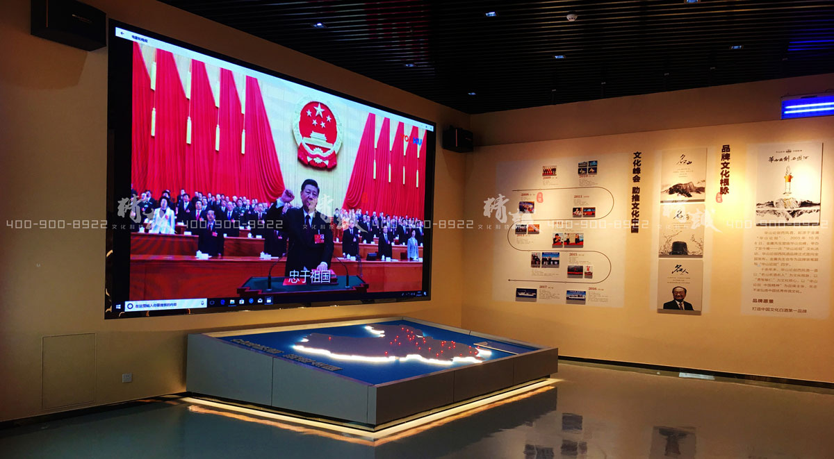 數字光電沙盤展示了西鳳品牌立足陝西挺進全國的宏偉藍圖,利用酒瓶對中國地圖進行造型裝飾,彰顯了西鳳品牌挺進全國的偉大願景。